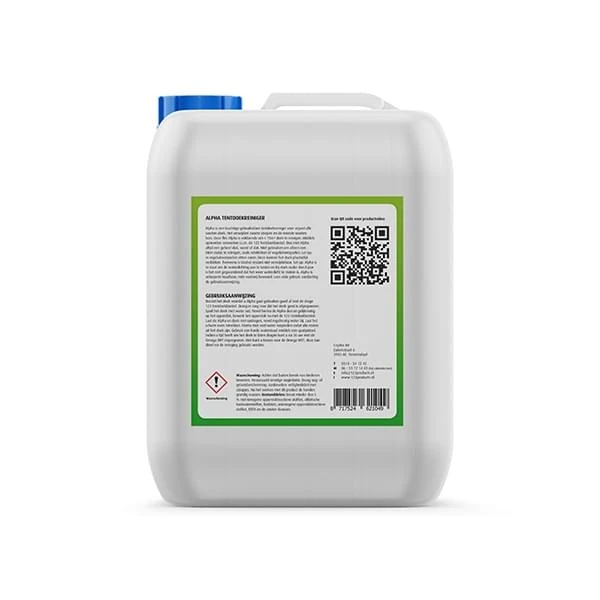 Alpha is een tentdoekreiniger die geschikt is voor vrijwel elk soort tentdoek. Na het schoonmaken raden wij je aan om het tentdoek weer opnieuw waterdicht te maken met bijvoorbeeld 123 Omega Wet of -Dry.Â