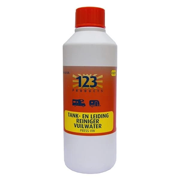 Press VW van 123 is een leiding- en tankreiniger voor afvoerleidingen en grijs/zwartwater afvaltanks in campers en caravans. Naast reinigen laat Press VW ook een zeepfilm in de leiding achter, waardoor het opnieuw aanhechten van vuil tegen wordt gegaan.Â