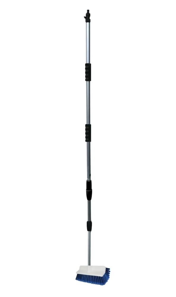 Deze stevige 123 wasborstel heeft een telescopische steel met een lengte van 2×100 cm. Op het handgreep zit een kraantje gemonteerd waarmee het water afgesloten kan worden wat door de telescopische steel loopt.