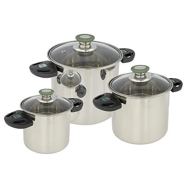 Deze 3-delige pannenset van Bo-Camp is ideaal voor op de camping. De pannen zijn gemaakt van rvs en hebben kunststof handgrepen. Deze kunnen gemakkelijk weggeklapt worden zodat de pannen compact zijn weg te bergen. De pannen hebben een smal en hoog model waardoor ze erg geschikt zijn voor de beperkte ruimte op gaskomforen.