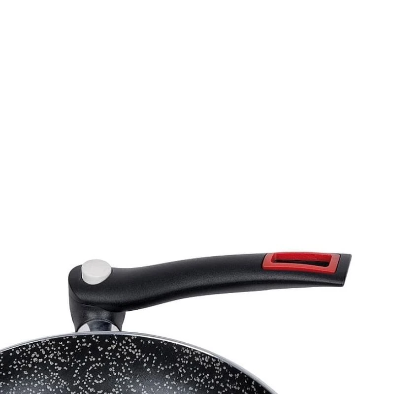De Turn wokpan van Bo-Camp heeft een handvat wat weggedraaid kan worden. Hierdoor kun je de pan compact opbergen zonder dat je een los handvat hebt wat zoek kan raken. De pan is gemaakt van aluminium en heeft een stevige 5-laagse Salus stenen anti-aanbak coating. De wokpan is geschikt voor het koken op gas of elektrisch en kan ook voor keramisch koken gebruikt worden.