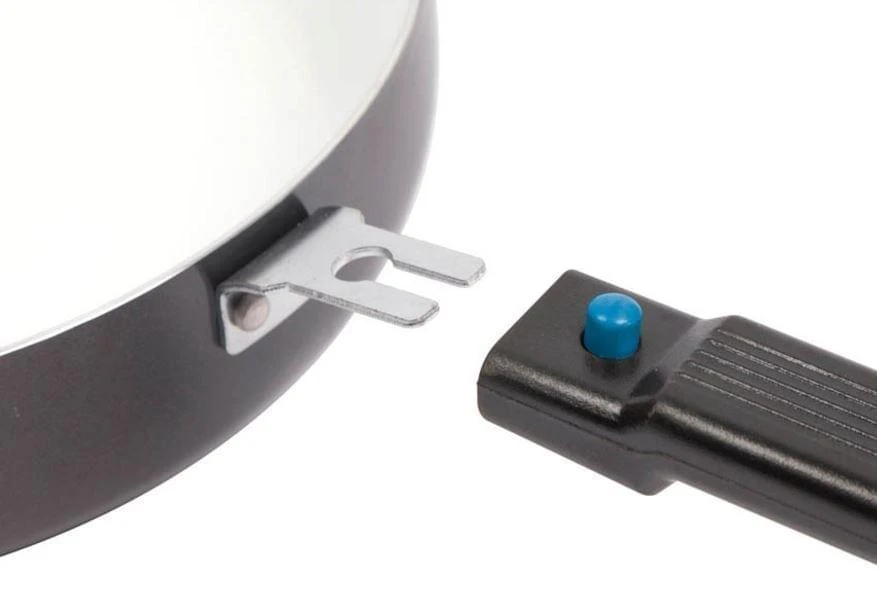 Deze compacte wokpan is voorzien van een keramische coating, wat aanbakken voorkomt en waardoor er minder vet nodig is om te koken. De coating is daarnaast ook kraswerend en is eenvoudig schoon te maken. Deze wokpan is ideaal voor het roerbakken van vlees, vis en groente en is geschikt voor gas, keramische en elektrische warmtebronnen. Door de afneembare steel is deze pan ook nog eens compact op de bergen.