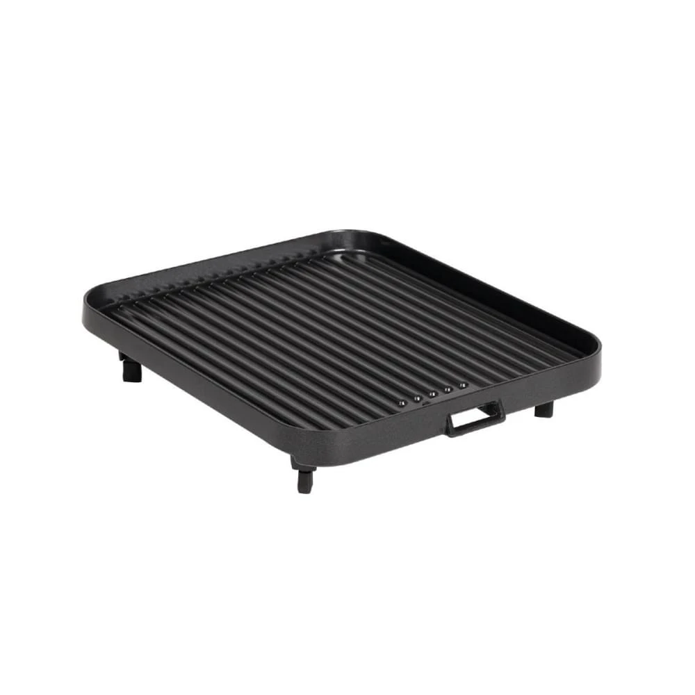 Deze losse grilplaat is bedoeld als accessoire voor je Cadac 2 Cook 3. Zo kan je met deze grilplaat de pannendrager vervangen om zo bijvoorbeeld een hamburger te bakken. De plaat is gemaakt van aluminium en heeft een speciale keramische GreenGrill coating. Deze coating is beter voor je gezondheid in vergelijking met andere anti-aanbaklagen en is overigens ook gemakkelijker schoon te maken. Daarnaast heeft deze grilplaat ook een afneembaar handvat.