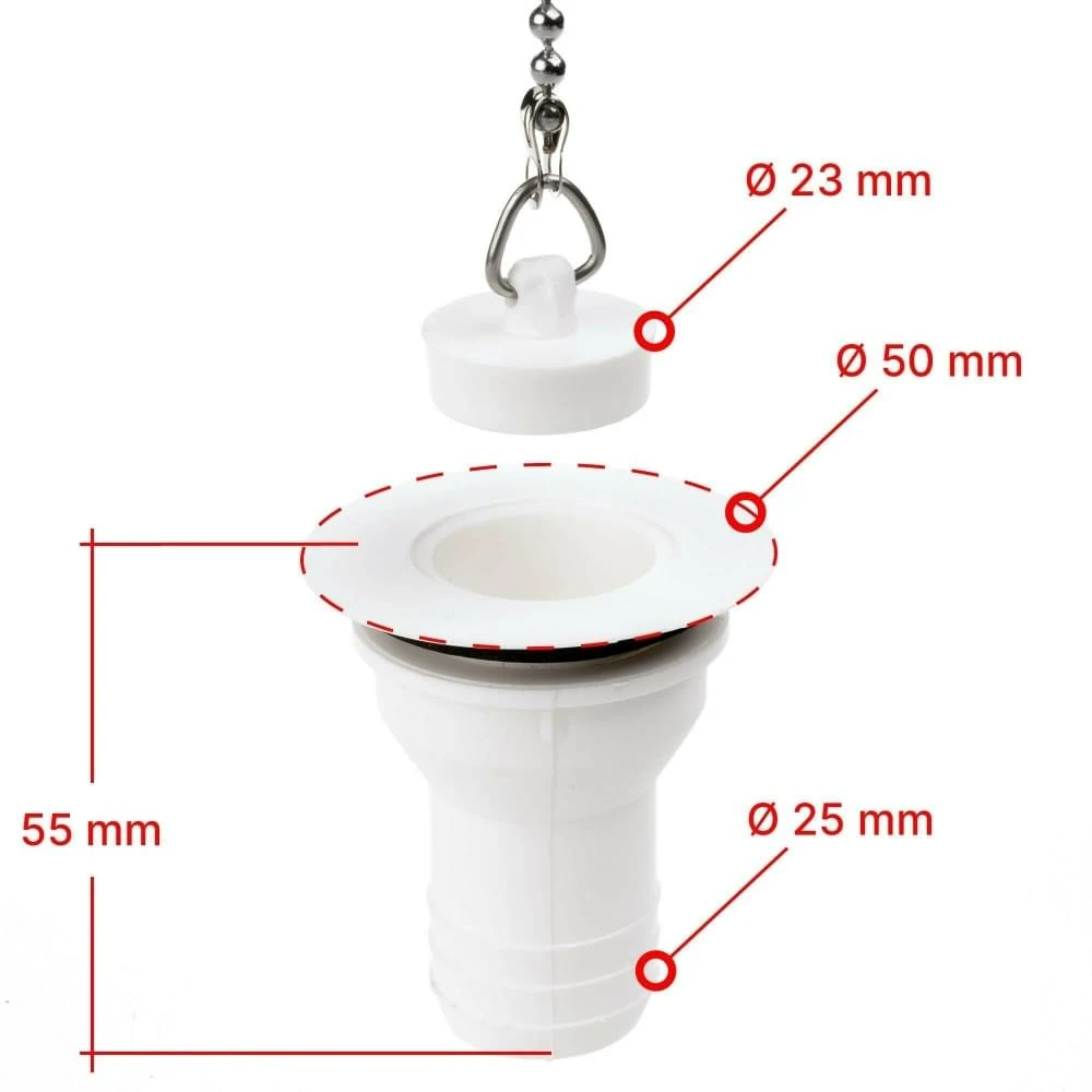 Deze Rechte Afvoerplug van Comet heeft een slangaansluiting van 25 mm. De plug wordt geleverd met rubberen afsluitring en afvoerdopje met ketting.