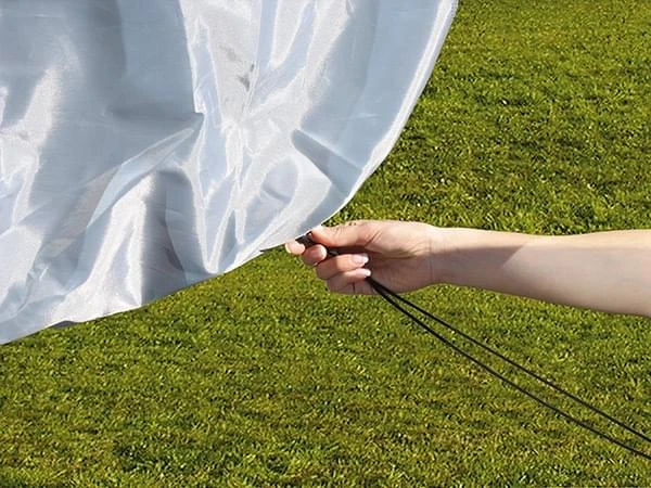 Onderaan de hoes zit een koord waarmee je de hoes eenvoudig bevestigd.