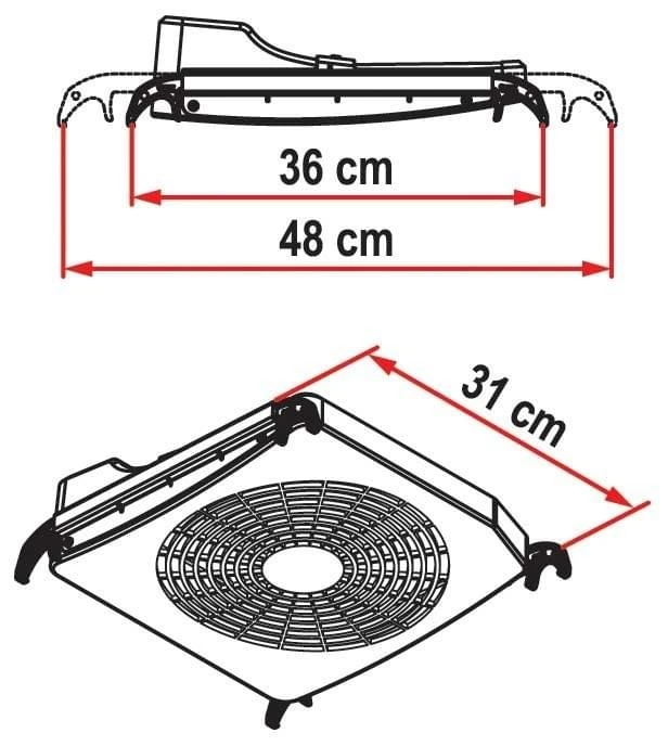 De Turbo-Kit van Fiamma is een 12V ventilator die geschikt is voor bestaande dakluiken. De verstelbare telescopische pootjes maken het mogelijk om de ventilator in dakluiken te plaatsen van 40 x 40 cm tot 50 x 70 cm. De pootjes zijn verstelbaar van 36 tot 48 cm.
