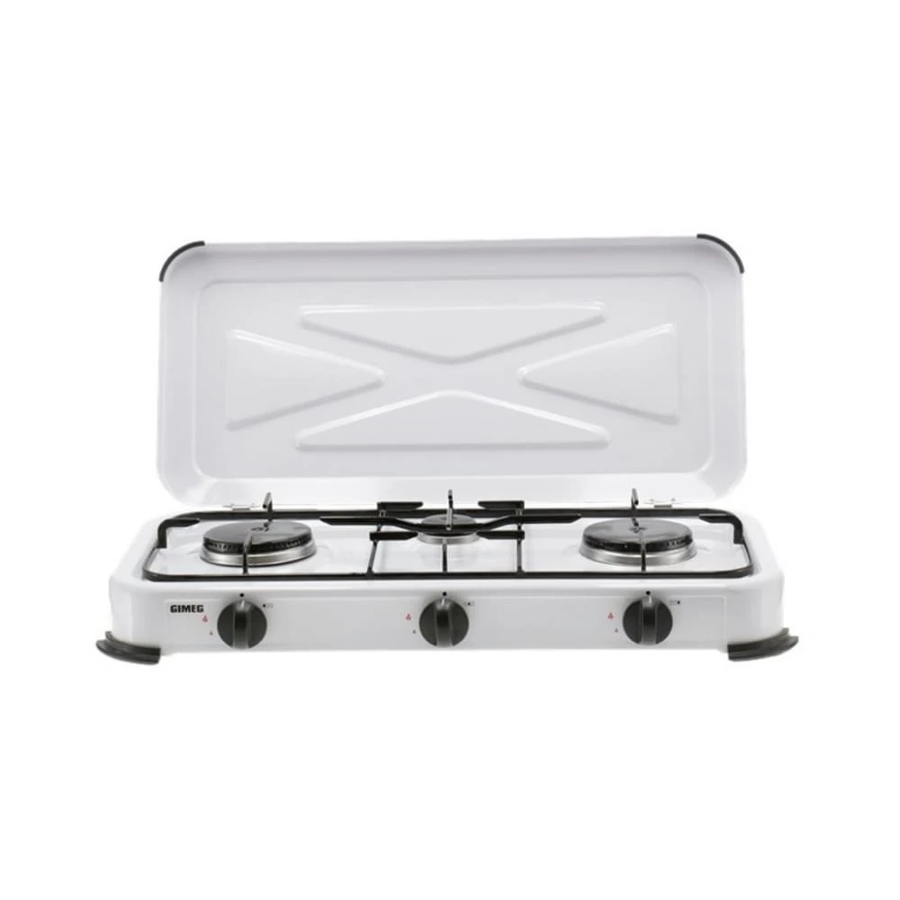 Het 3-Pits Kooktoestel is een perfect kooktoestel voor op de camping. Nu met verhoogd vermogen van 2 x 2.2 kW en een sudderpit van 0.9 kW. De geëmailleerde pannendrager zorgt ervoor dat de pannen stabiel staan en is ruim genoeg voor bijna alle campingpannen. De antislip voetjes zorgen voor nog meer veiligheid. Het deksel kan je na het koken sluiten waardoor je weer wat meer ruimte hebt of je gebruikt het deksel tijdens het buitenkoken als windscherm. Door de afneembare pannendrager is het 3-pits kooktoestel van Gimeg makkelijk schoon te maken.