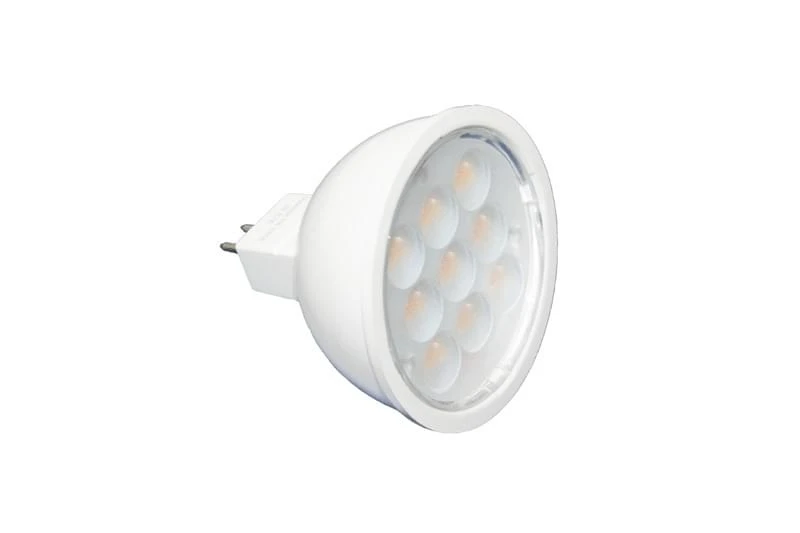 Dit MR16 lampje is uitgevoerd in ledlampjes. De 9 ledlampjes zorgen voor een gezamenlijke lichtsterkte van 350 lumen, wat vergelijkbaar is met een 20W halogeenlampje. Het lampje werkt op 12V en heeft een vermogen van 2,8W. Verspreidt een warm wit licht, is voorzien van stabilisator en is niet dimbaar.