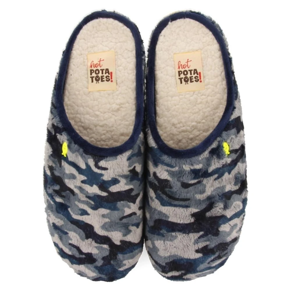 Zachte sloffen waar je niet meer vanaf kan blijven. Dat zijn de Hiebine herenpantoffels van Hot Potatoes. Ze zijn lekker warm en zacht, maar hebben ook een comfortabel en stevig voetbed. Zo kan je ze lekker aan houden tijdens het koken, spelen met de kinderen of het luisteren van muziek in die fijne relaxstoel. Naast het hoge comfort hebben de sloffen ook een stoer camouflage design.