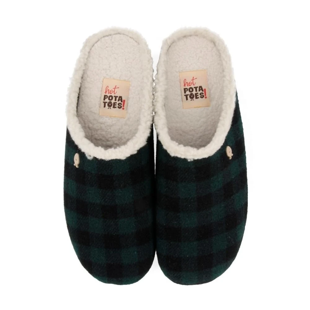 Op zoek naar warme wollige sloffen met een geliefd klassiek design? Het merk Hot Potatoes is je beste vriend! De Tijvin sloffen zijm heerlijk warm en hebben een bekend ruitje. De pantoffels zijn erg comfortabel en de uitneembare inlegzool biedt veel demping en steun.