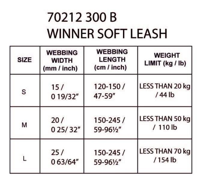 De Winner Soft Leash is in de volgende maten verkrijgbaar:
