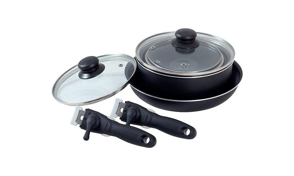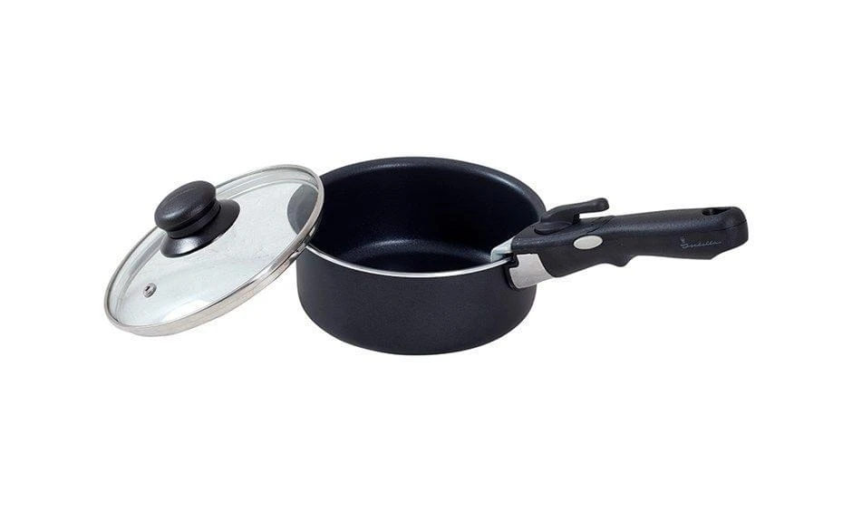Een complete pannenset van Isabella. De pannen zijn geschikt voor alle warmtebronnen en opstapelbaar. Ideaal voor op de camping omdat je al zoveel wilt meenemen. De kookpannen zijn af te sluiten met een glazen deksel met koudgreep. Je pakt de pannen van het vuur met de afneembare pannengreep die je eenvoudig vastklikt en vastzet.