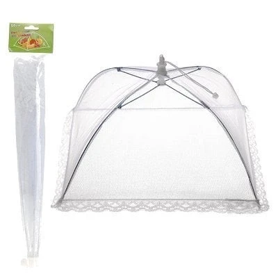 Met dit handige uitklapbare vliegenkapje houd je op een eenvoudige manier de insecten uit je eten.