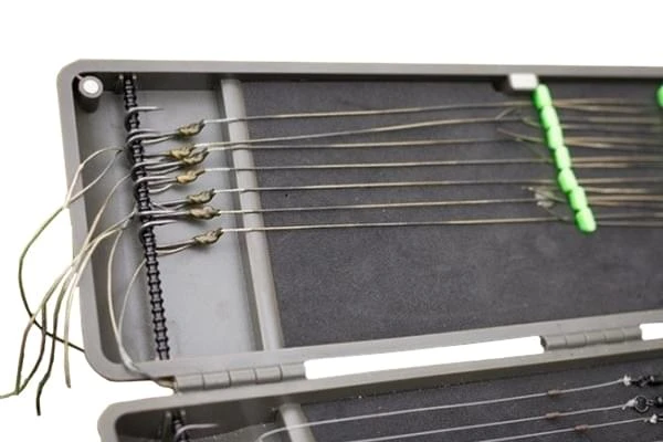 Speciaal ontwikkeld voor het opbergen van onderlijnen heeft Korda de Rigsafe ontwikkeld. Zo blijven je zorgvuldig geknoopte lijnen in topconditie. Haak de onderlijn die je al geknoopt hebt simpelweg aan de daarvoor bestemde houder. Met een rig pin zet je de lijn vervolgens strak en vast.