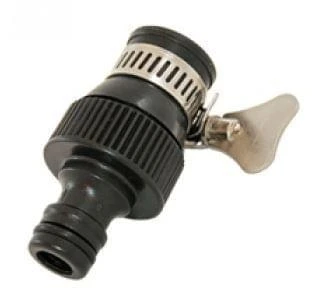 Dit universele kraan verloop past op kranen van 13,6mm tot 6,3mm dikte. Het verloop zet de uitgang van een kraan om tot een snelkoppeling, waarop bijvoorbeeld een waterslang aangsloten kan worden.