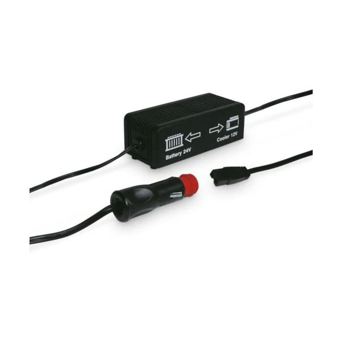Dé omvormer van Mobicool om je 12 volt koelbox te kunnen gebruiken op een 24 volt accu. Veel vrachtwagens, maar tegenwoordig ook sommige boten, hebben een 24 volt accu om elektronica op aan te sluiten. Terwijl de meeste koelboxen gemaakt zijn voor een 12 volt aansluiting. Met deze omvormer kun je je Mobicool koelbox aansluiten op een 24 volt stroompunt.