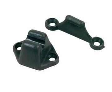 Zwarte kunststof deurvanger. De gatafstand is voor de klem 30 mm en voor het smalle deel 45 mm.
