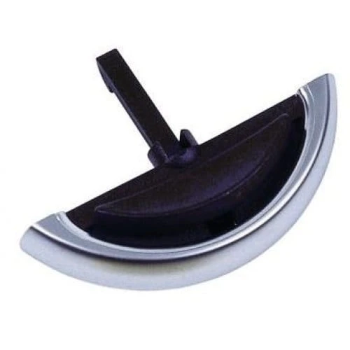 Moderne kunststof meubelgreep met een chroomkleur. De greep is 71 mm breed. De drukknop is voorzien van een veer.