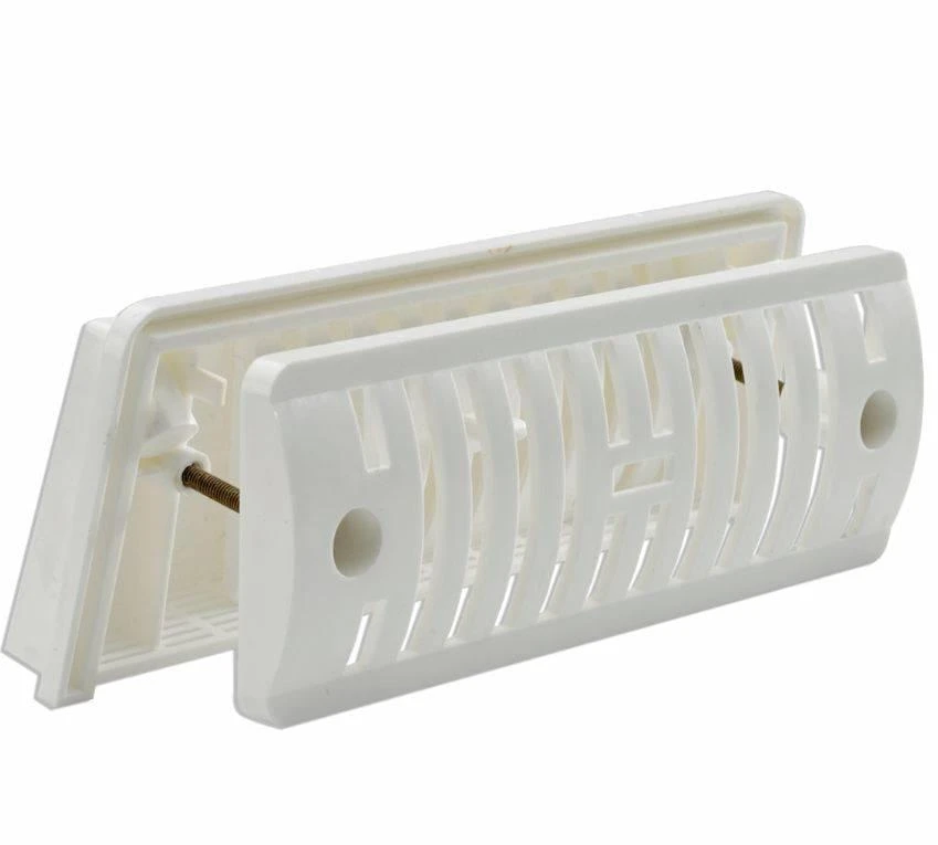 Het ventilatierooster inbouw is 3-delig en gemaakt van kunststof. Het is voorzien van een rooster en ventilatieschijf. Het rooster is 210 x 85 mm.