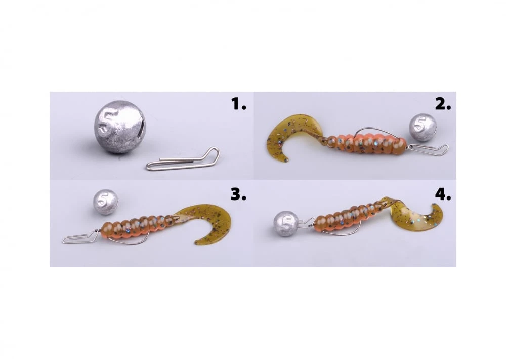 De Spro Bottom Jig is gebaseerd op de Cheburashka-techniek, die vanuit Rusland is over komen waaien. Dit klinkt heel ingewikkeld, maar het is een simpele en effectieve methode voor Bottom-Jigging met zeer licht materiaal. Met een aantal simpele stappen is dit systeem al klaar om te vissen. Neem de clip uit de jig, bevestig een workhaak en de clip kan weer teruggeplaatst worden.