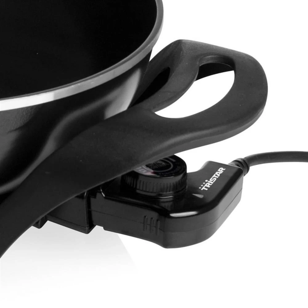 Met deze Elektrische Wok of Hapjespan van Tristar maak je snel een lekker pan nasi voor de hele familie of gebruik hem als warmhoudpan. De RVS pan is voorzien van een antiaanbaklaag, heeft een inhoud van 4,5 Liter en wordt geleverd met een deksel. Tijdens het wokken blijven de handvaten koel en na het eten is hij eenvoudig schoon te maken. Â