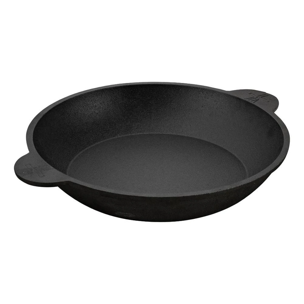 Kenmerkend aan de gietijzeren paellapan is de hoge rand. Zo kan je goed je aardappeltjes of andere gerechten omschudden zonder dat deze eruit vallen. De paellapan van The Windmill is op iedere warmtebron te gebruiken en doordat hij geen steel heeft past hij ook goed in een barbecue. Een extraatje aan deze pan is dat hij past op de 6QT en de 9QT Dutch Ovens. Je kan deze Dutch Oven deksels dus ook op deze pan gebruiken en daarmee je gerechten ook van bovenaf verwarmen.